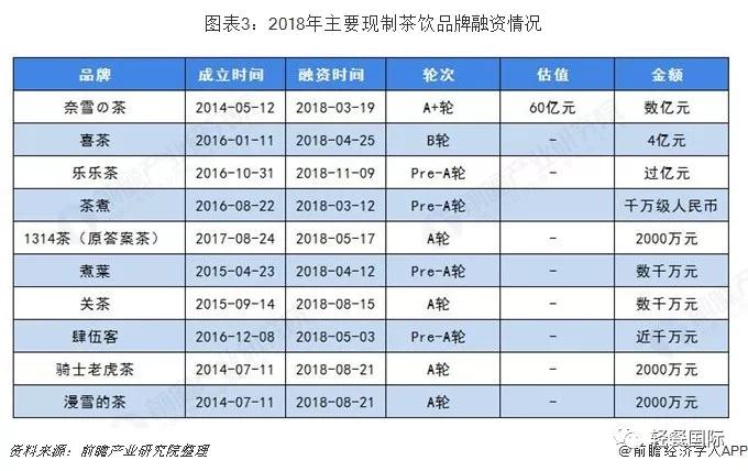 奈雪の茶更是以A+轮60亿估值成为我国现制茶饮行业的第一个独角兽企业,喜茶单轮融资额达到4亿元,众多成立于2014-2016年的现制茶饮品牌在2018年也迎来了集中融资风暴。